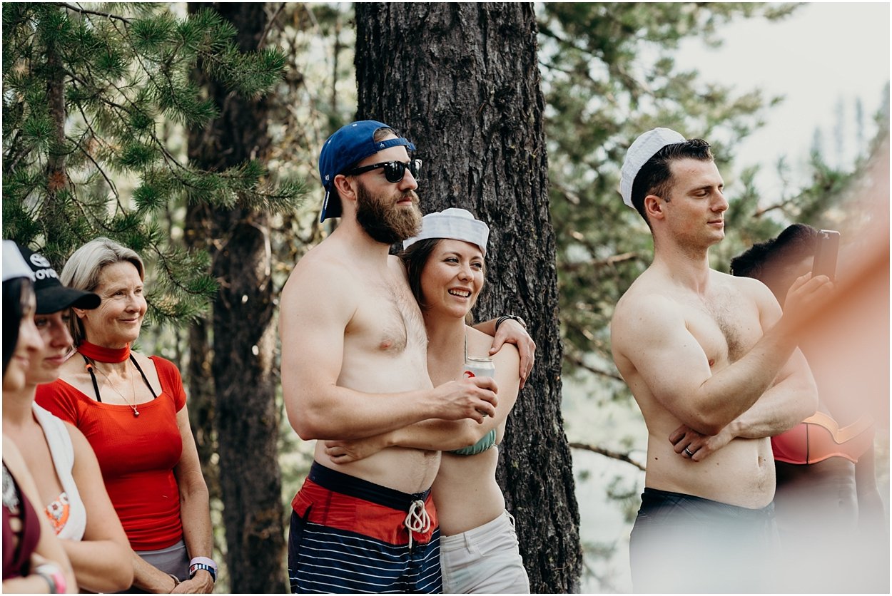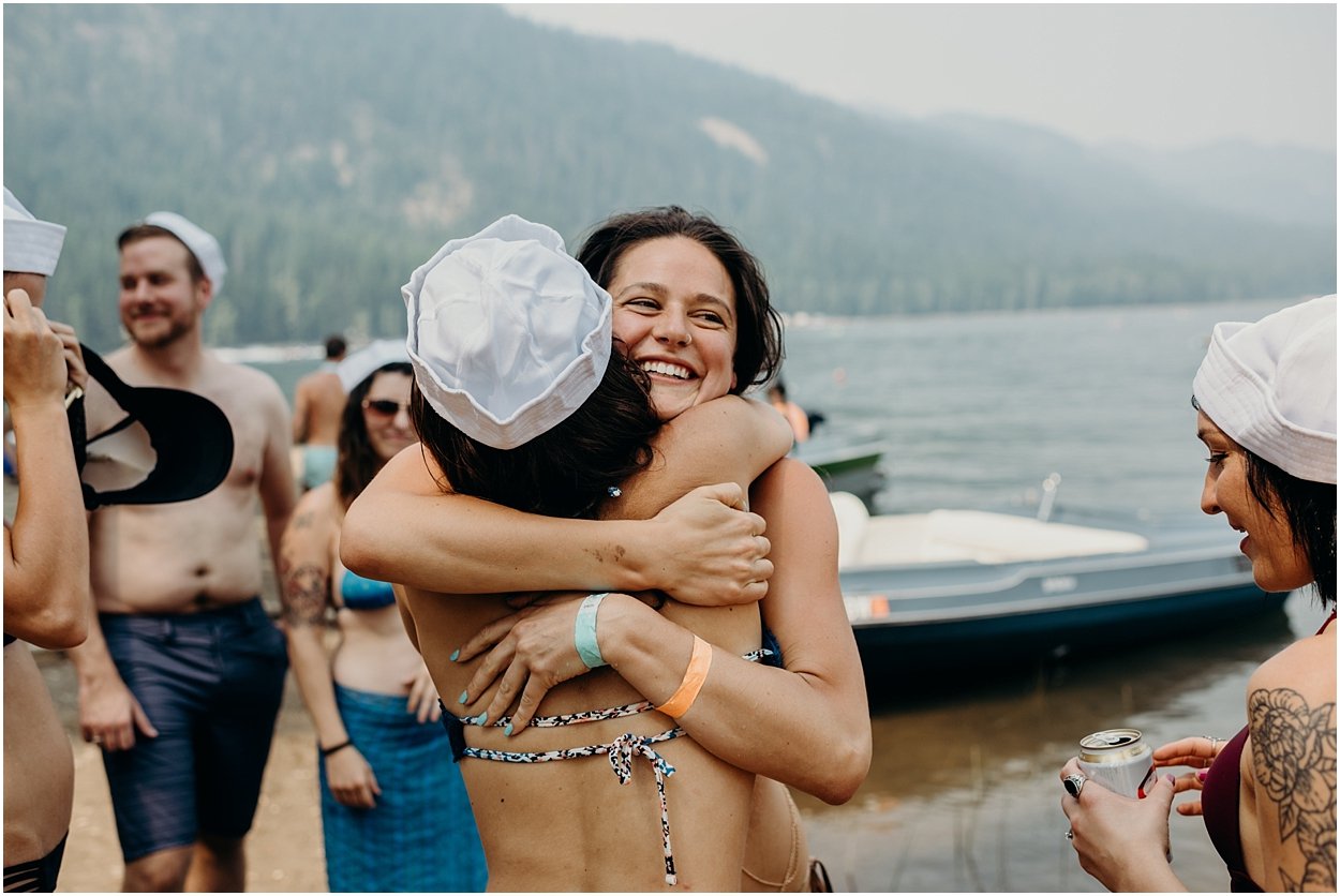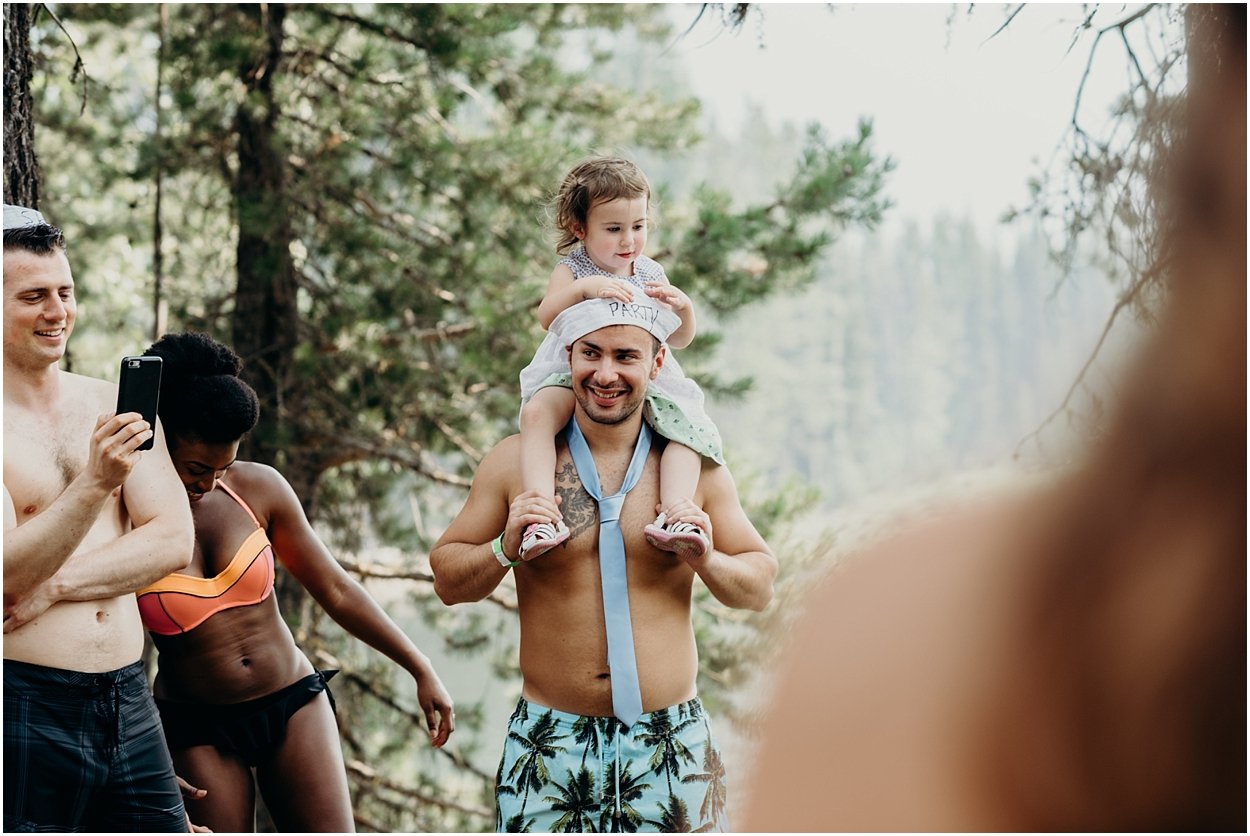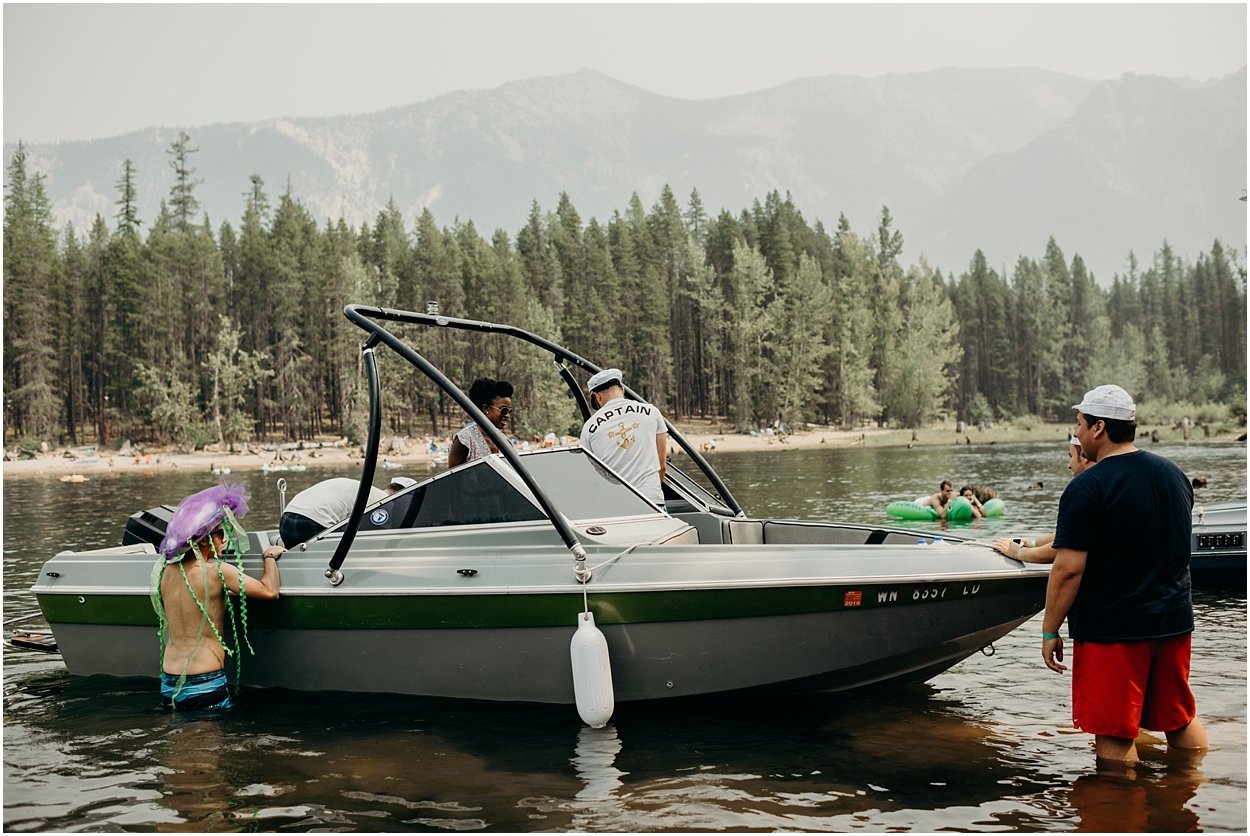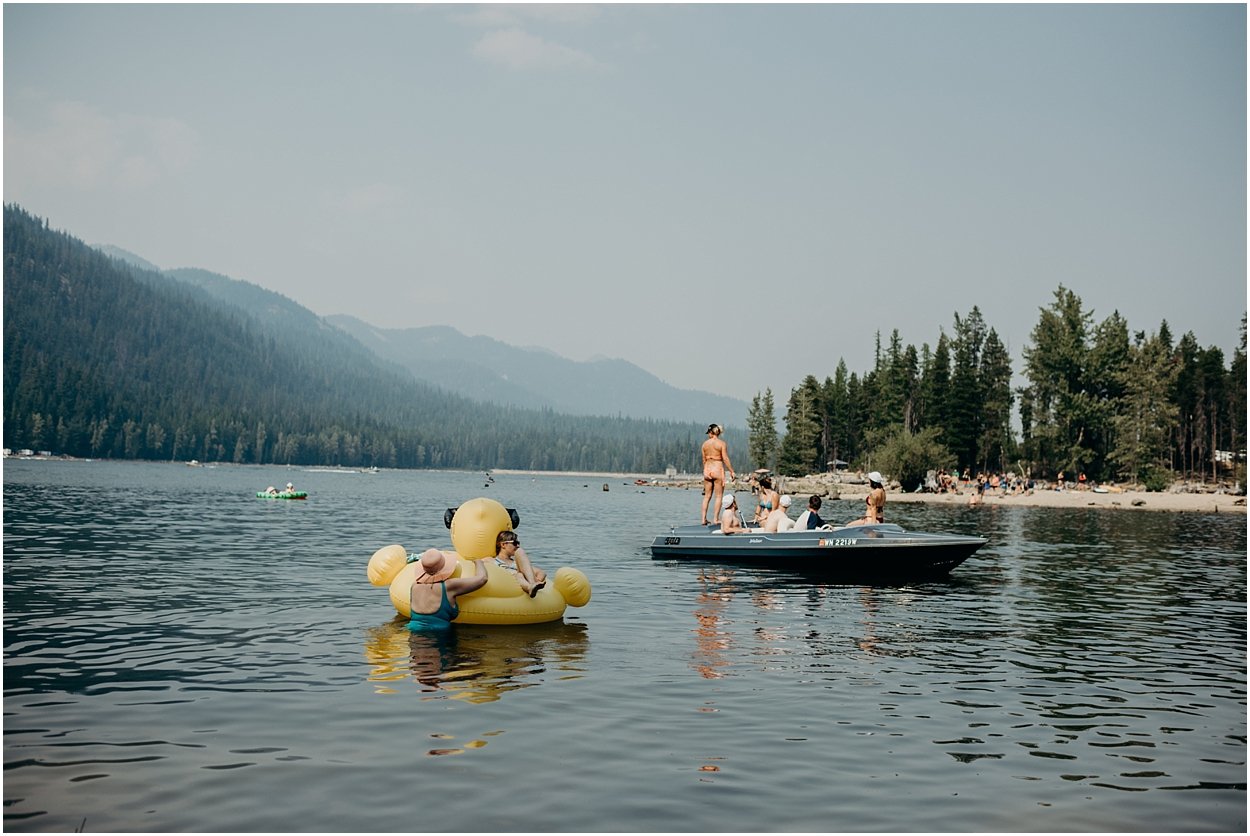 their ceremony entrance was the coolest i’ve ever experienced. the ceremony was on an island in the middle of bumping lake in mount rainier national park. so, you could either swim, float, or hitch a boat ride to the ceremony. chamonix and davey floated together on their favorite turtle floatie. :) the ceremony was nestled inside the fir trees on top of the lake island. we all laughed and shed a few tears. it was one of the sweetest ceremonies i’ve ever witnessed. then we had super fun day on the lake! it was a celebration to remember and i was so honored to be a part of it.