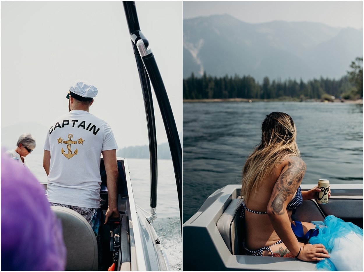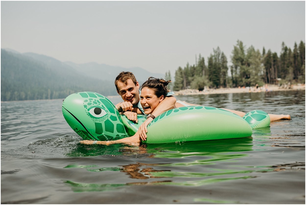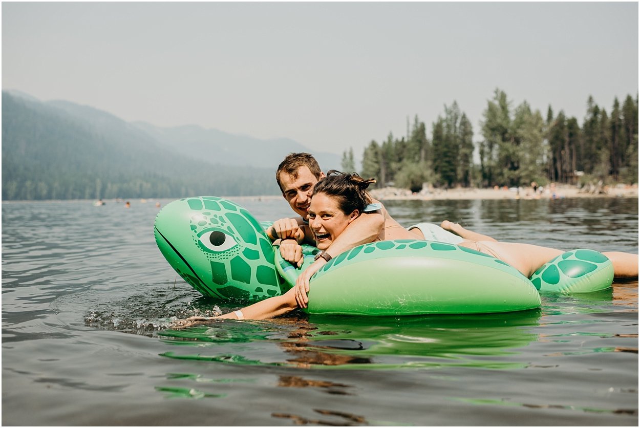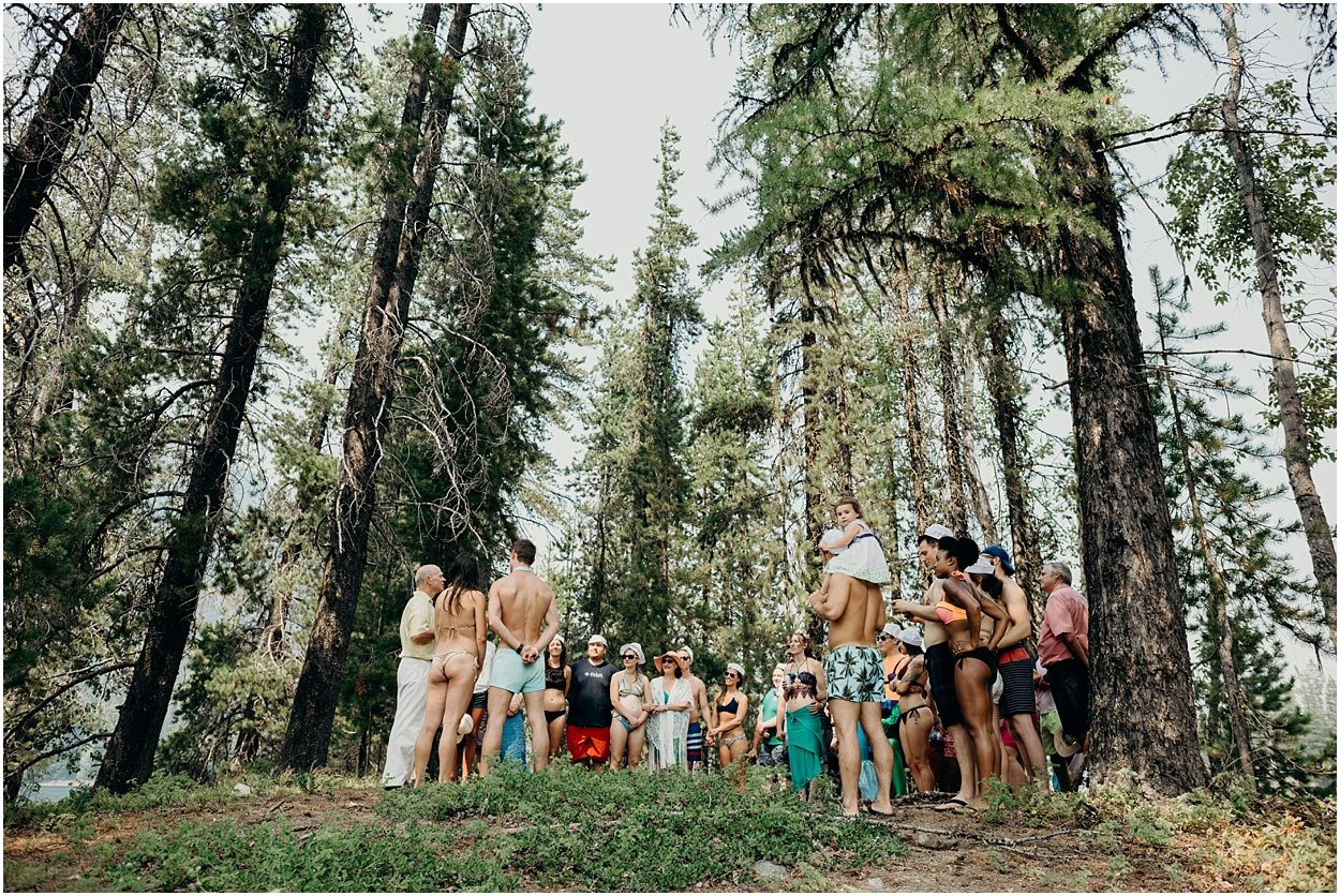 their ceremony entrance was the coolest i’ve ever experienced. the ceremony was on an island in the middle of bumping lake in mount rainier national park. so, you could either swim, float, or hitch a boat ride to the ceremony. chamonix and davey floated together on their favorite turtle floatie. :) the ceremony was nestled inside the fir trees on top of the lake island. we all laughed and shed a few tears. it was one of the sweetest ceremonies i’ve ever witnessed. then we had super fun day on the lake! it was a celebration to remember and i was so honored to be a part of it.