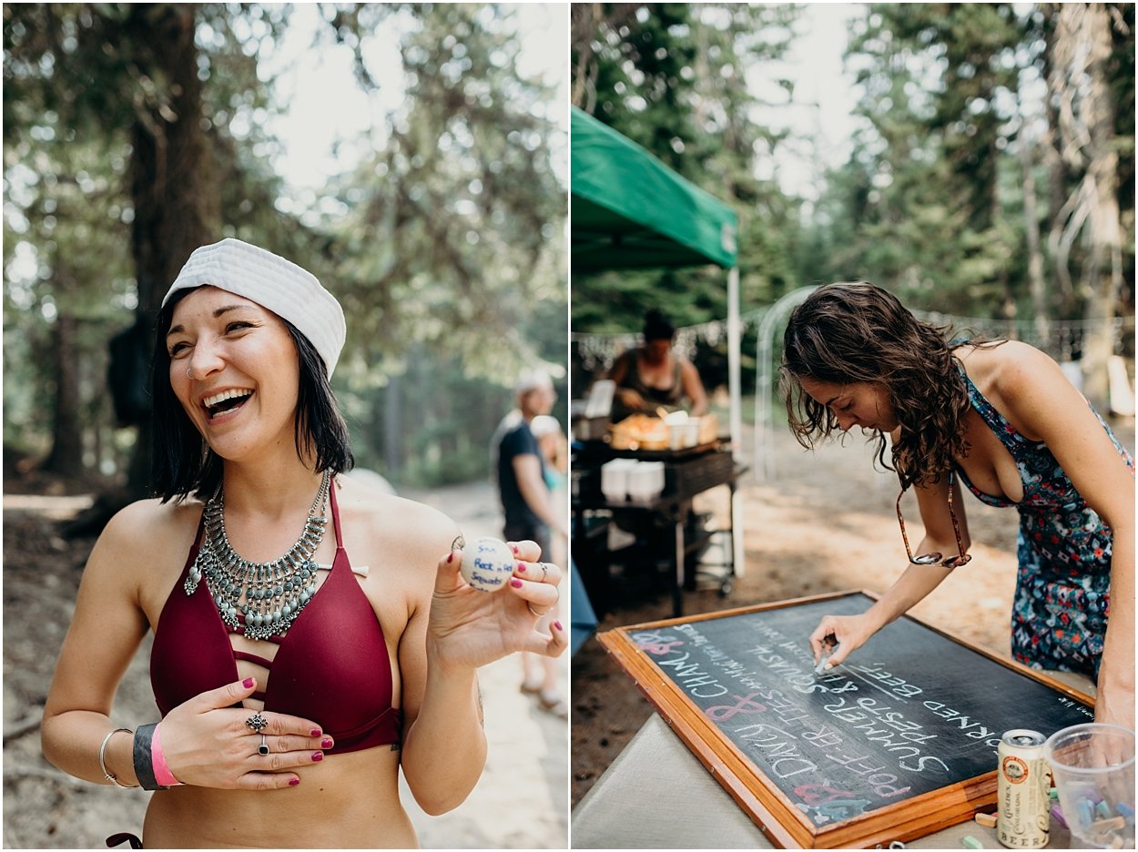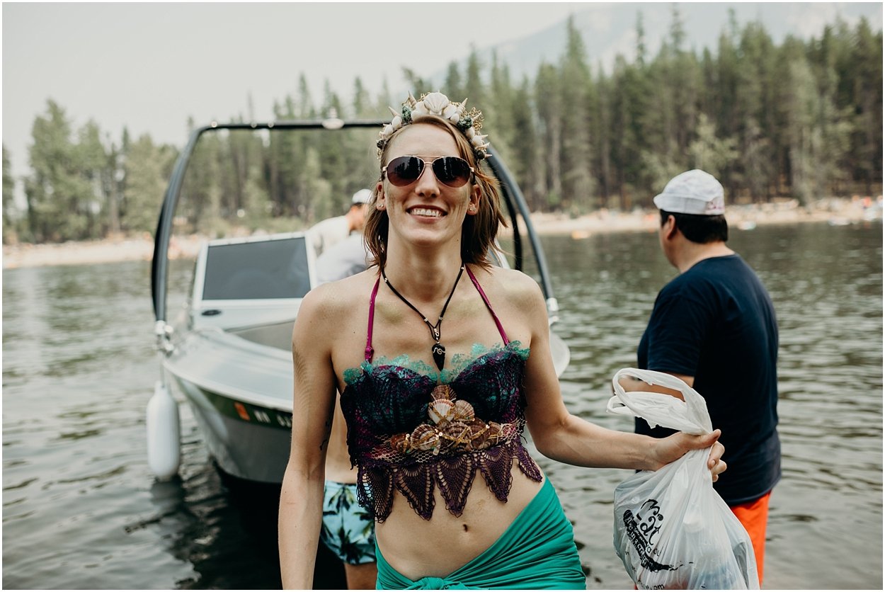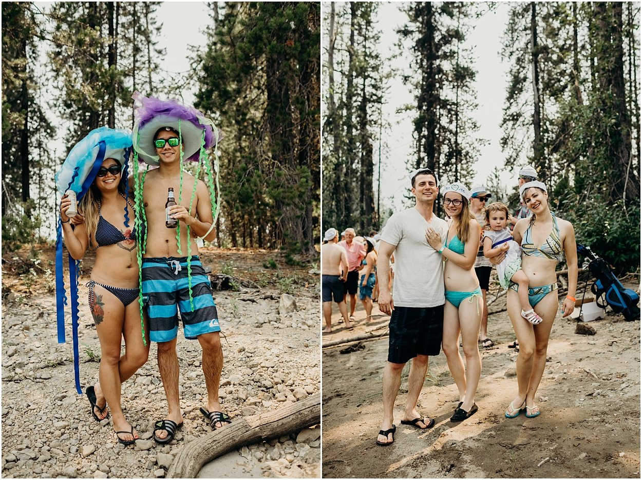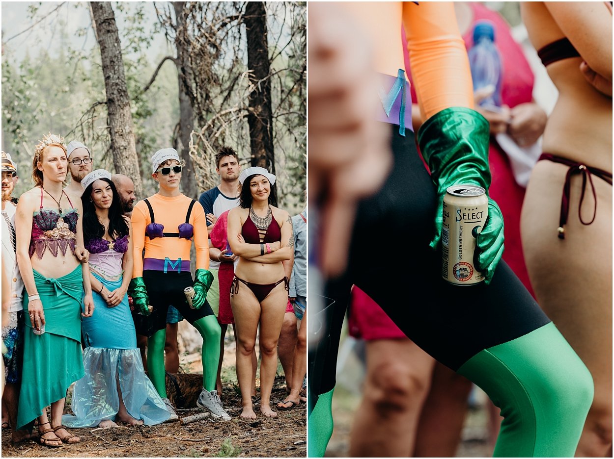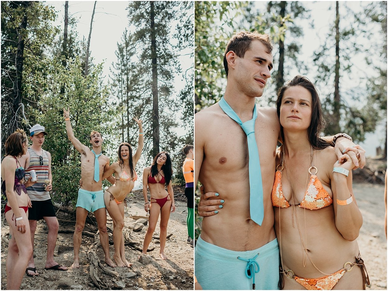 this wedding was the ultimate non-traditional celebration. chamonix and davey wanted their wedding day to be just like a day at the lake with friends and family. and that’s exactly what it was. they’re both musicians and love music festivals so they’re wedding was music festival themed. so fun. camping, playing at the lake, music, dancing, yummy food, beers….enjoying life. bathing suits and costumes were encouraged cuz why the heck not?