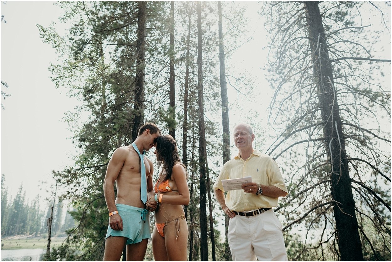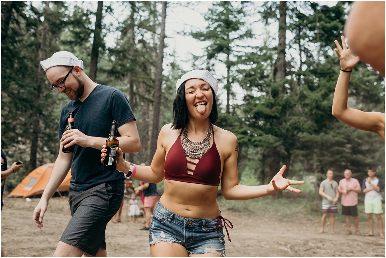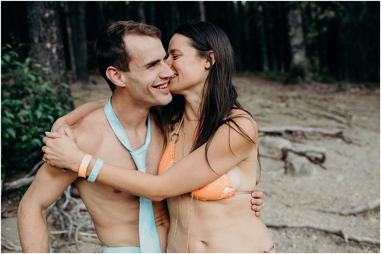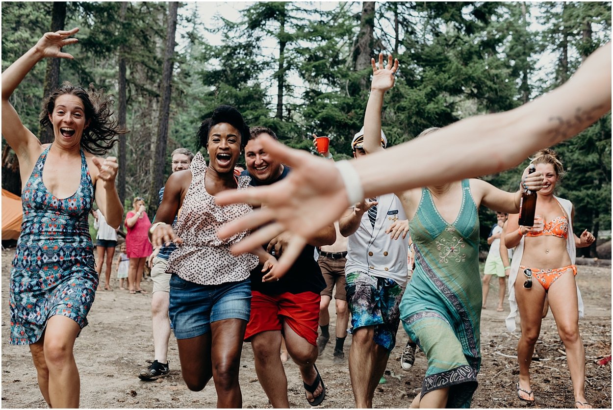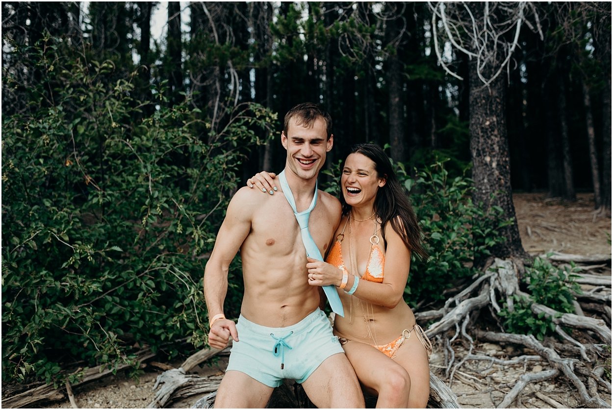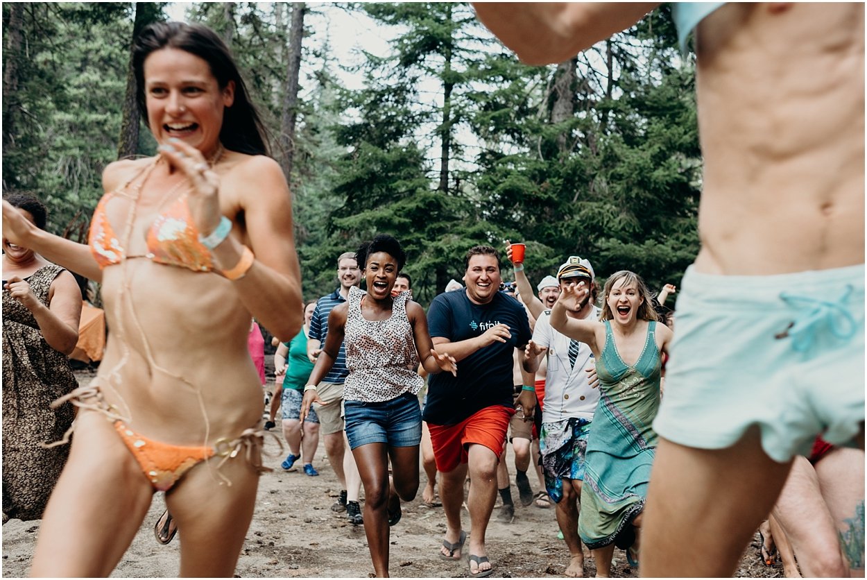 this wedding was the ultimate non-traditional celebration. chamonix and davey wanted their wedding day to be just like a day at the lake with friends and family. and that’s exactly what it was. they’re both musicians and love music festivals so they’re wedding was music festival themed. so fun. camping, playing at the lake, music, dancing, yummy food, beers….enjoying life. bathing suits and costumes were encouraged cuz why the heck not?