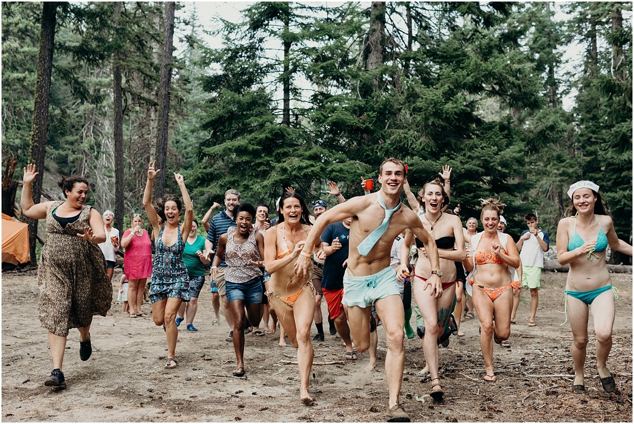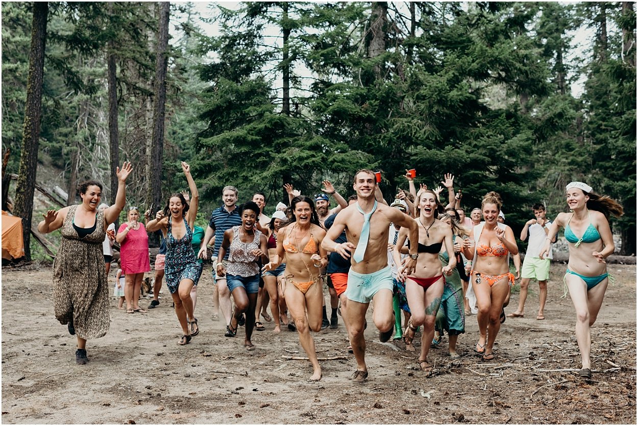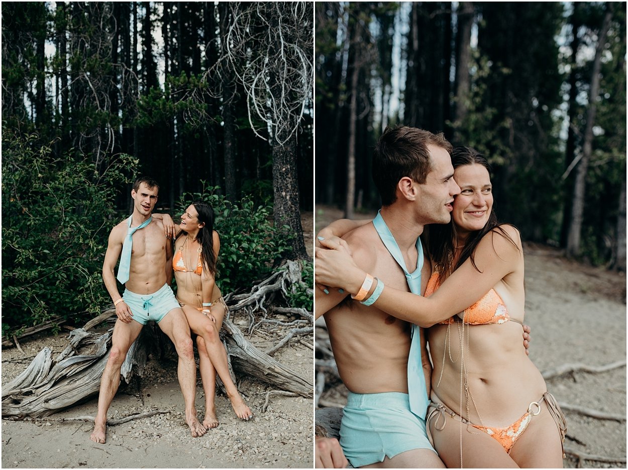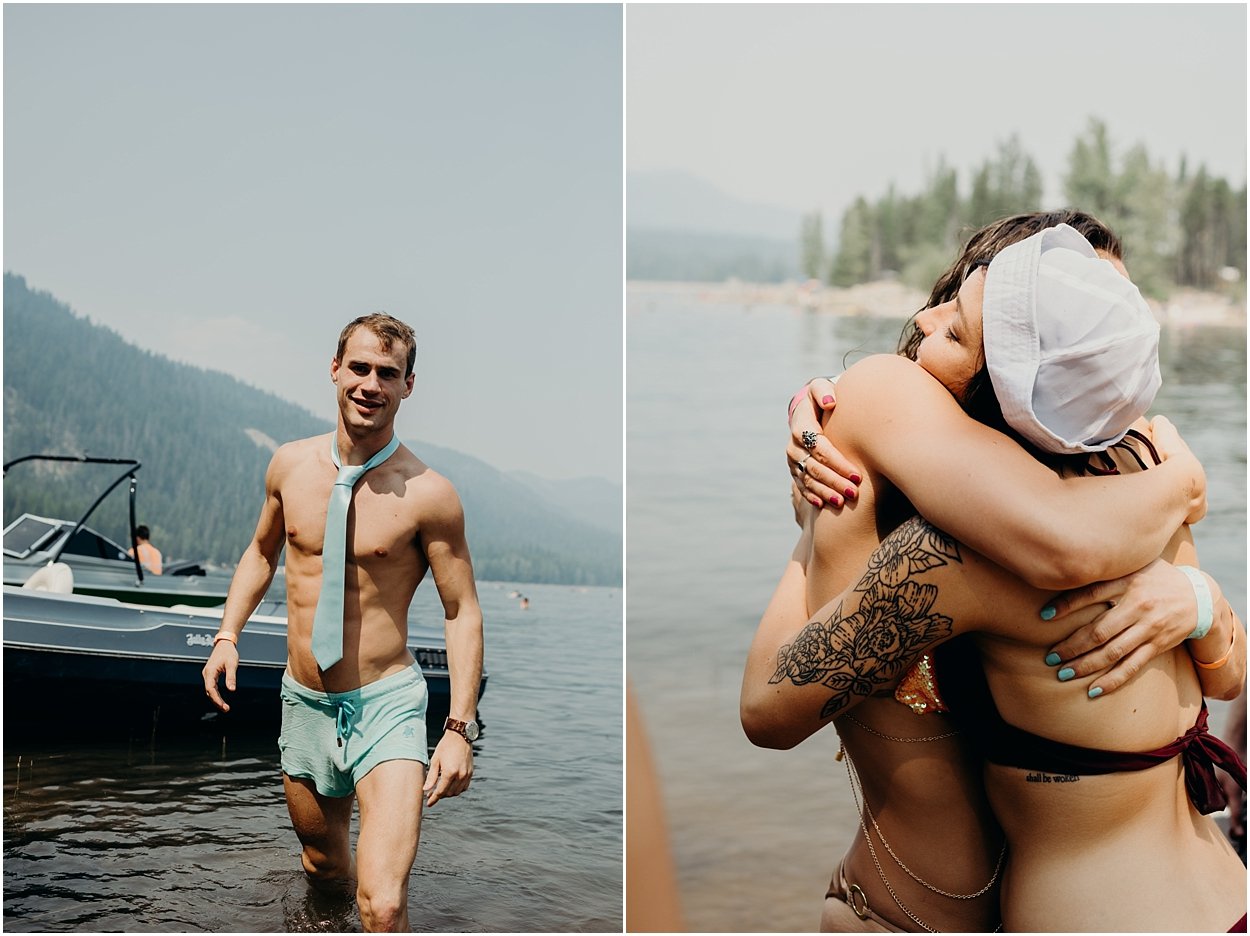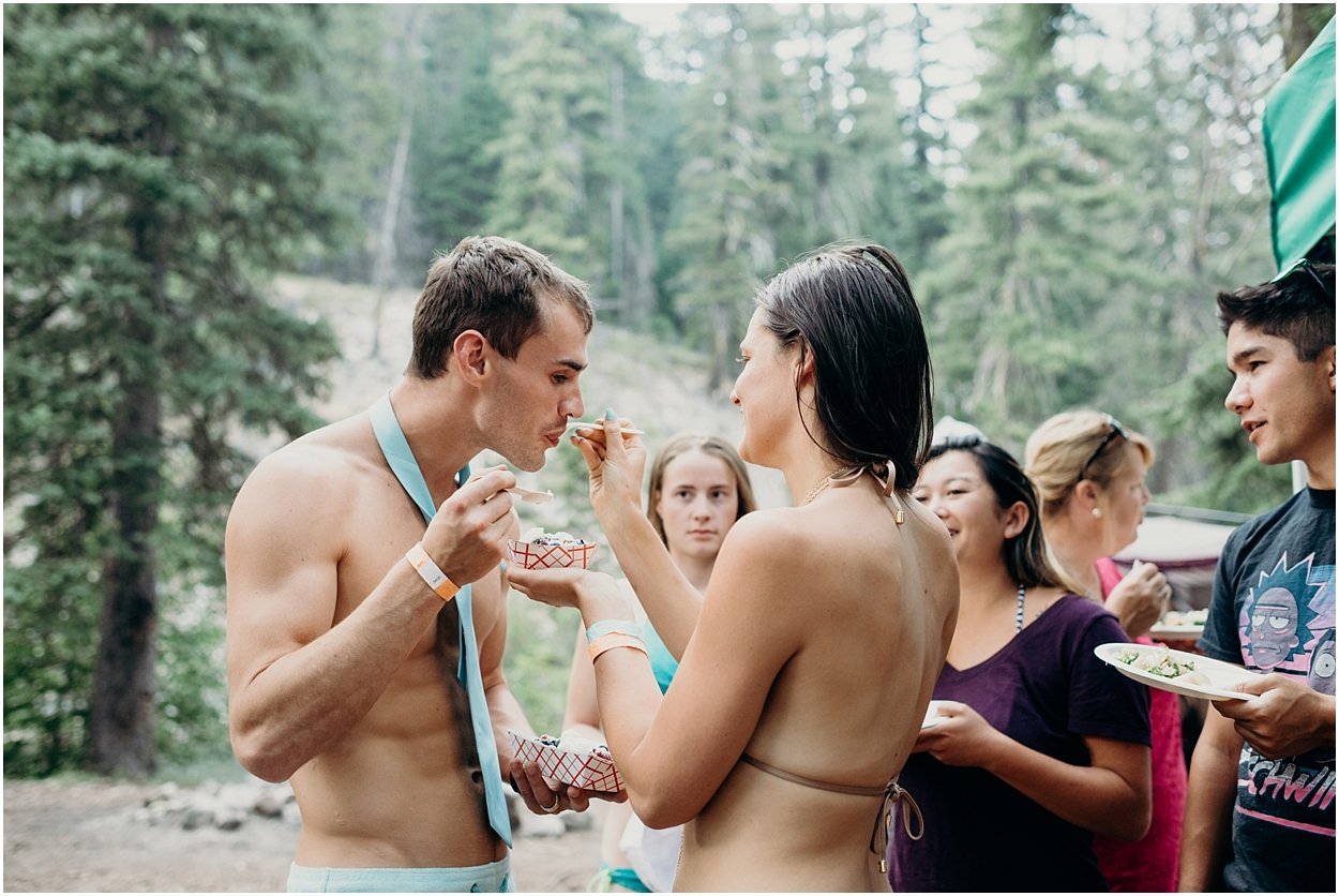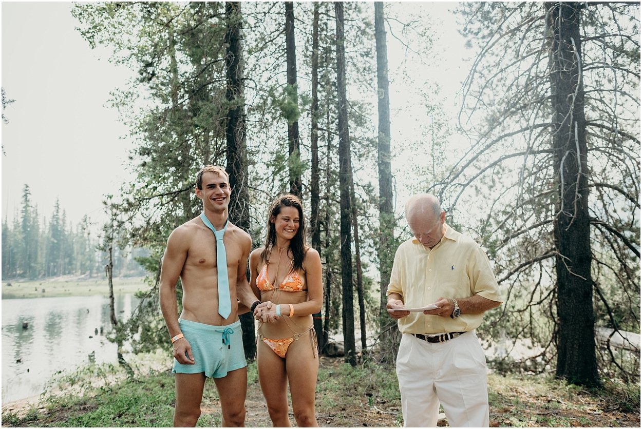 this wedding was the ultimate non-traditional celebration. chamonix and davey wanted their wedding day to be just like a day at the lake with friends and family. and that’s exactly what it was. they’re both musicians and love music festivals so they’re wedding was music festival themed. so fun. camping, playing at the lake, music, dancing, yummy food, beers….enjoying life. bathing suits and costumes were encouraged cuz why the heck not?