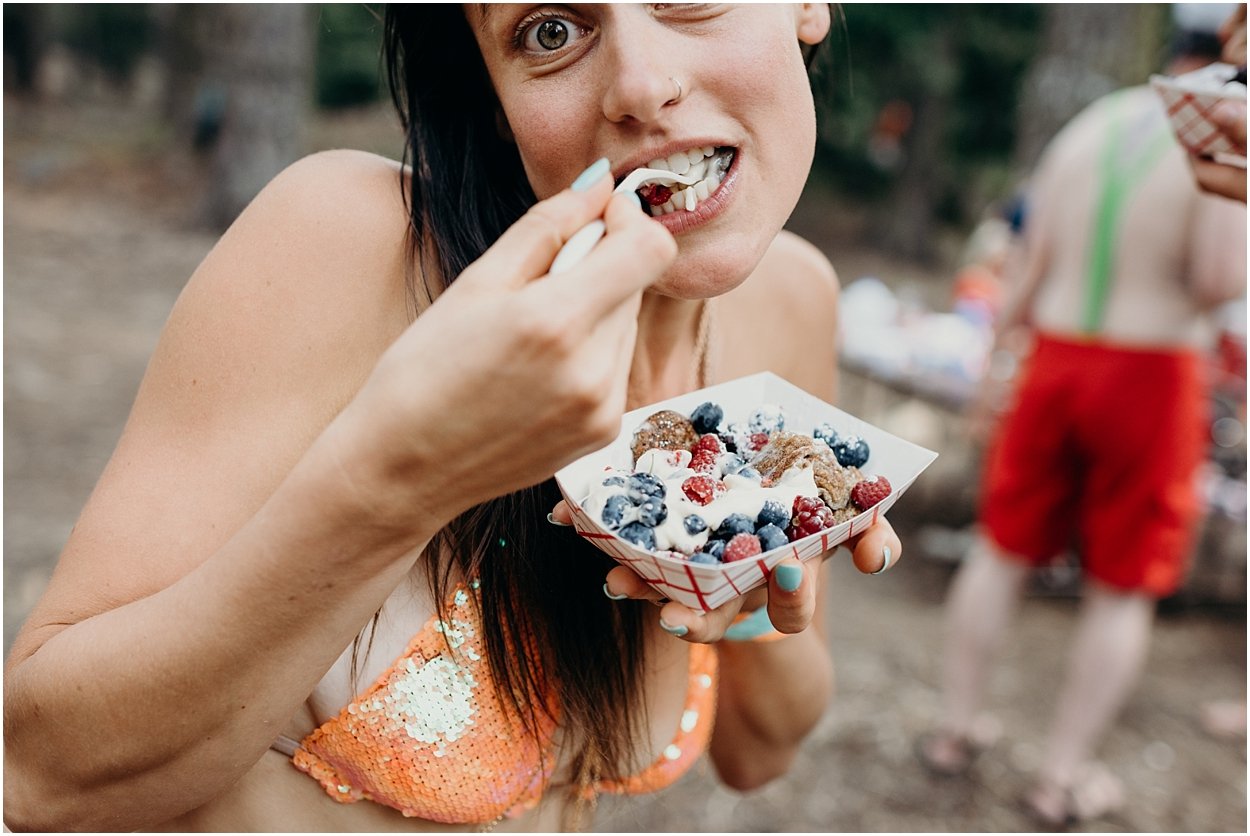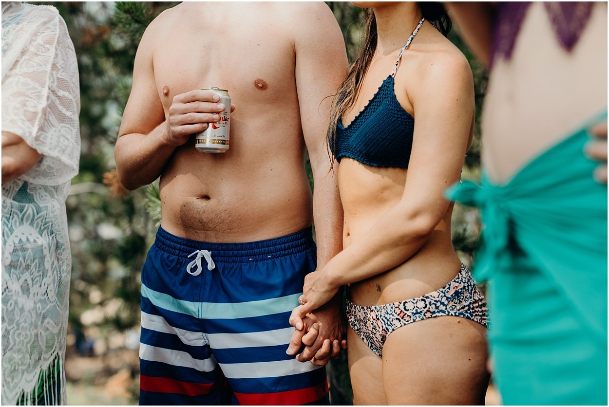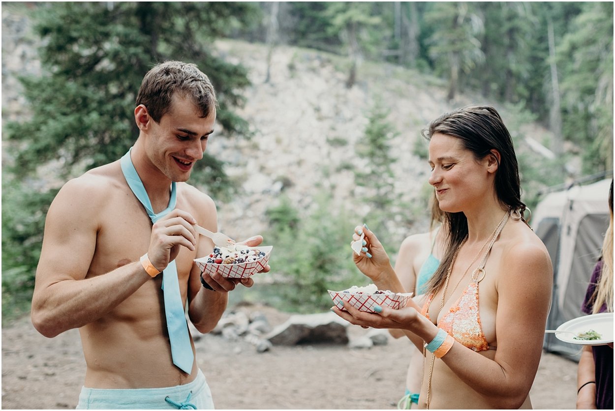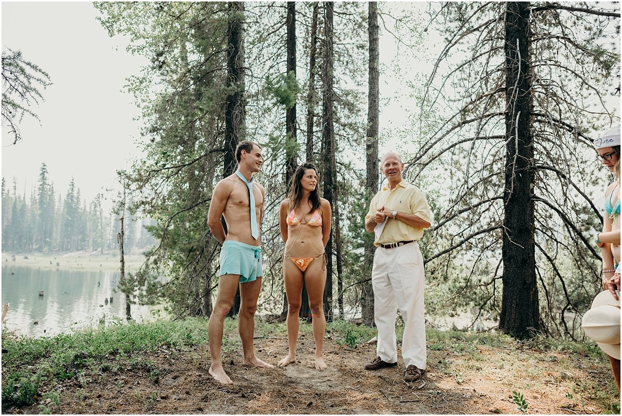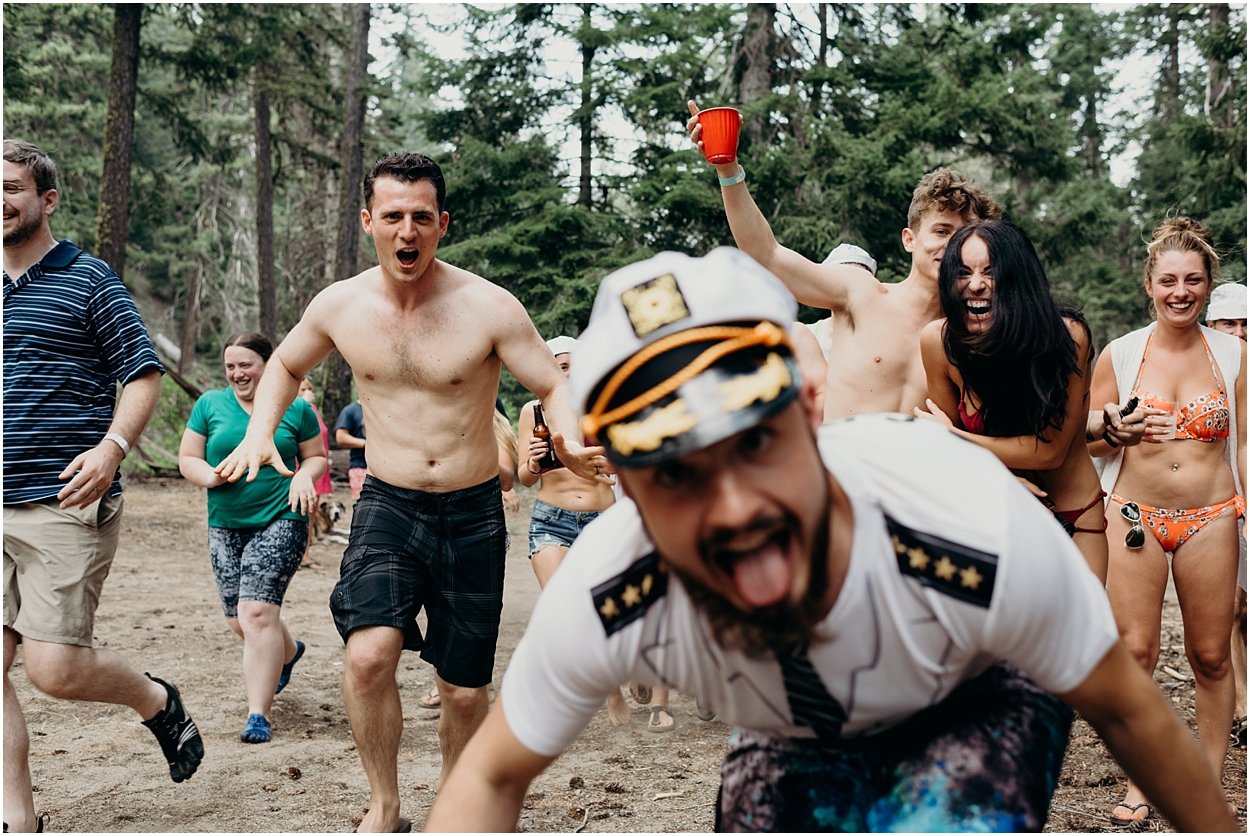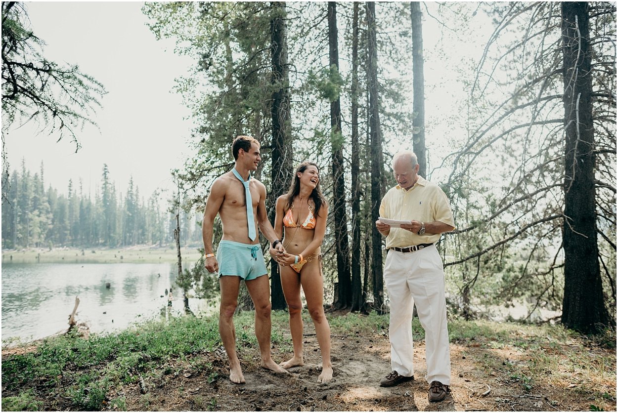 this wedding was the ultimate non-traditional celebration. chamonix and davey wanted their wedding day to be just like a day at the lake with friends and family. and that’s exactly what it was. they’re both musicians and love music festivals so they’re wedding was music festival themed. so fun. camping, playing at the lake, music, dancing, yummy food, beers….enjoying life. bathing suits and costumes were encouraged cuz why the heck not?